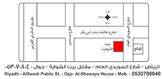 يقع بحى السويدي الشهير جنوب مدينة الرياض على شارع السويدي العام مقابل محلات زهرة التوفير.